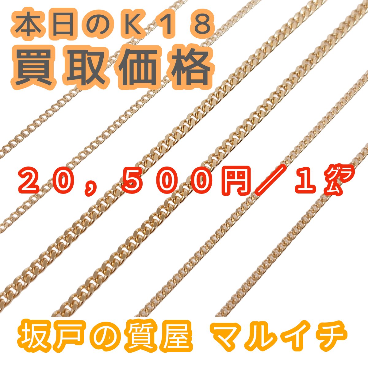 現在のk18買取価格は1gあたり20,500円です
