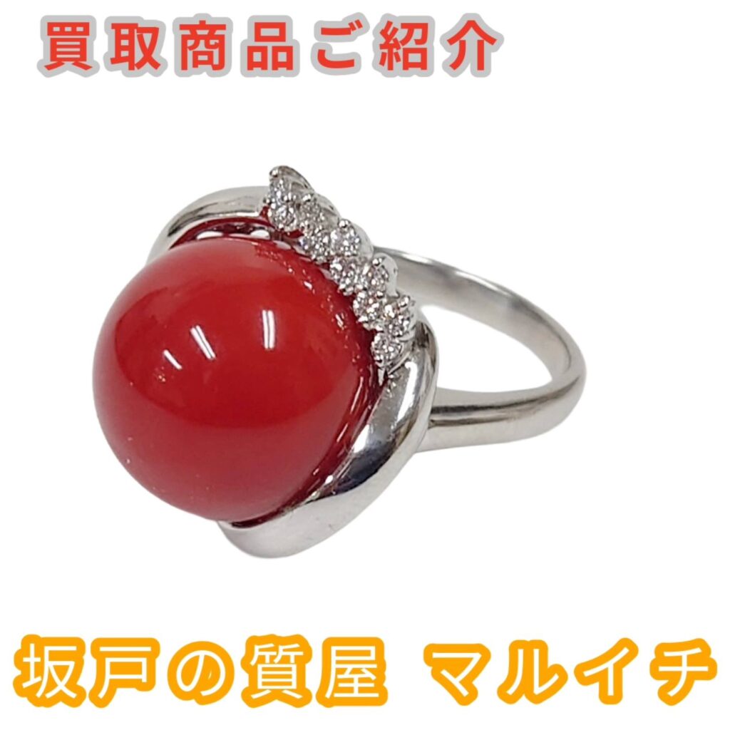 サンゴ・ダイヤ プラチナ台リング 買取させていただきました