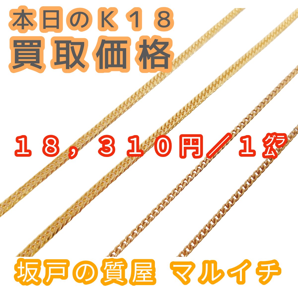 現在のk18買取価格は1gあたり18,310円です