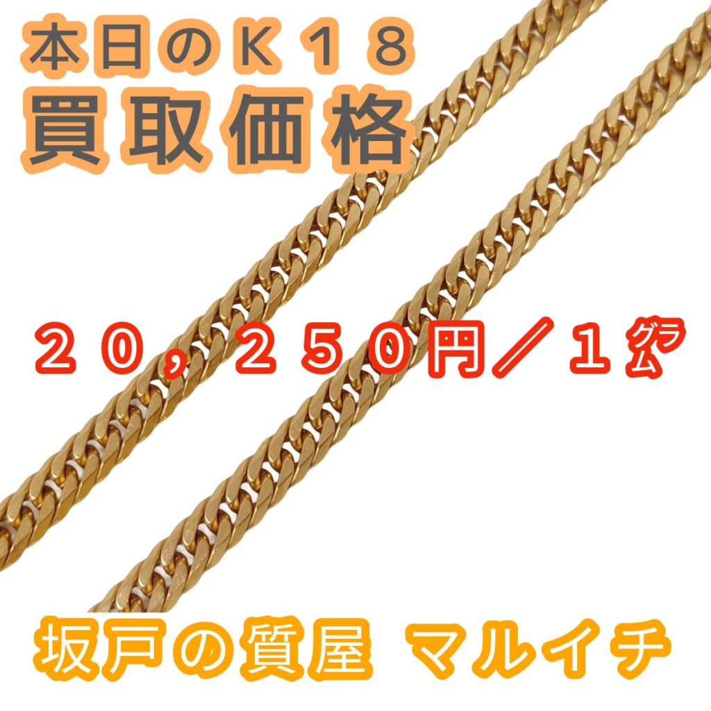 現在のk18買取価格は1gあたり20,250円です