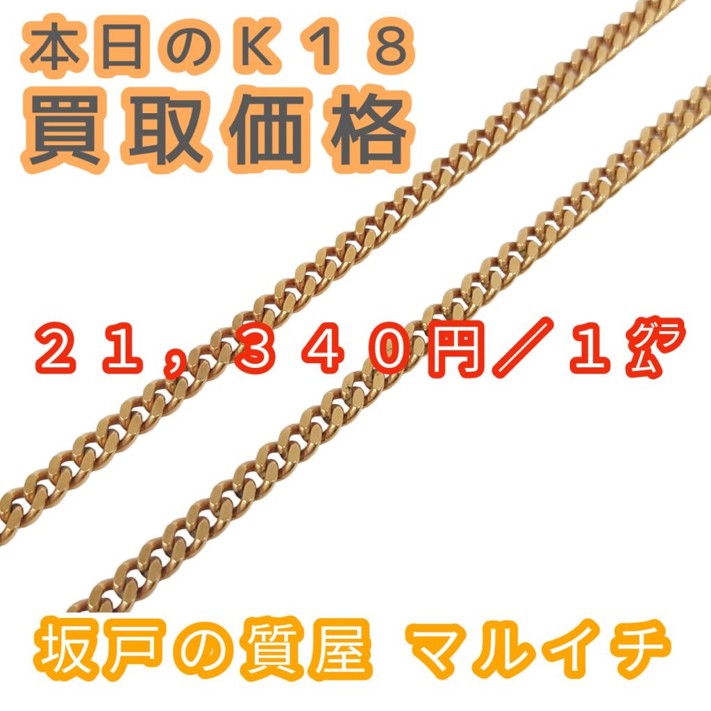 現在のk18買取価格は1gあたり21,340円です