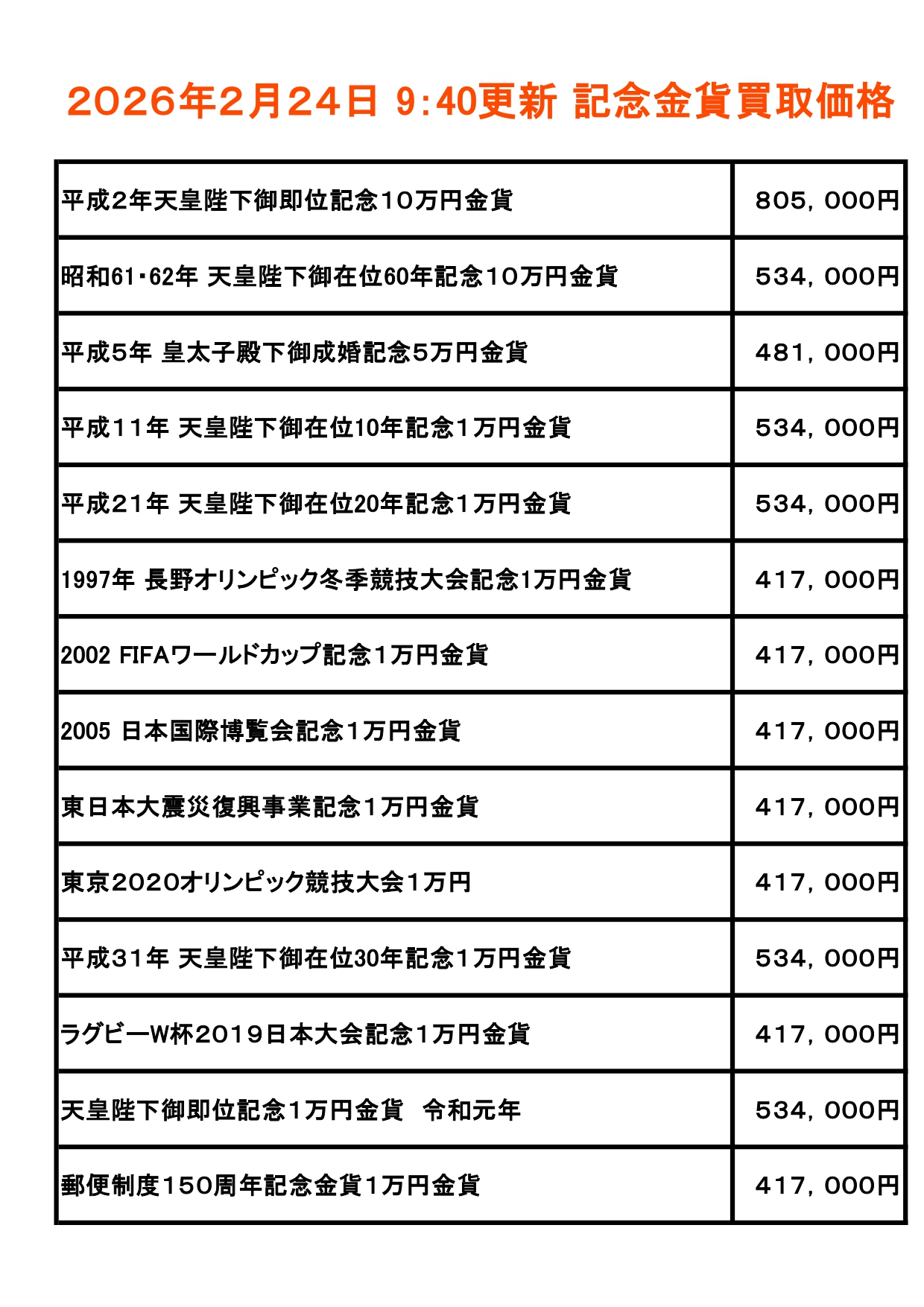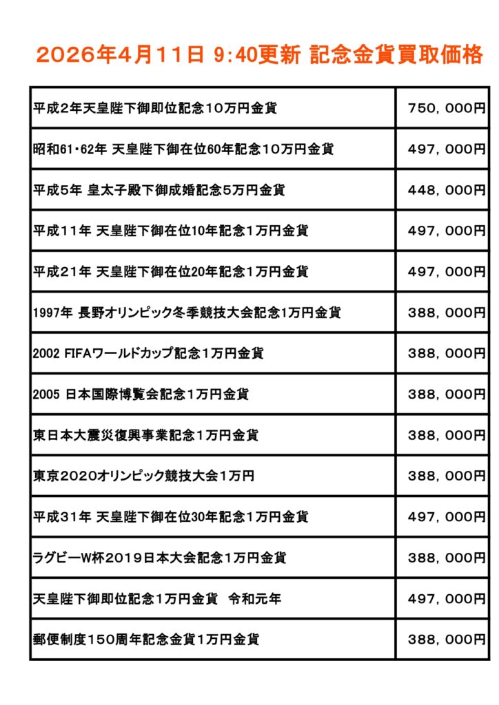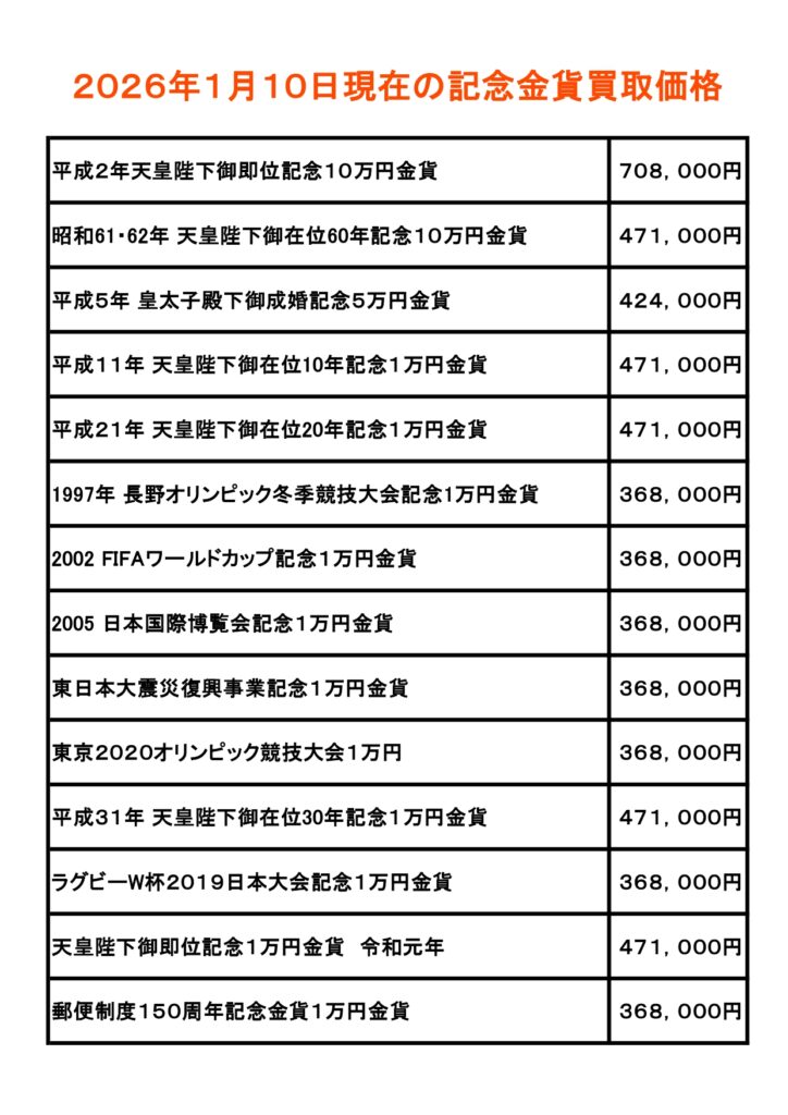 #記念金貨 #天皇陛下御即位記念 #天皇陛下御在位記念 #皇太子御成婚記念 #1997年長野五輪記念 #東日本大震災復興事業記念