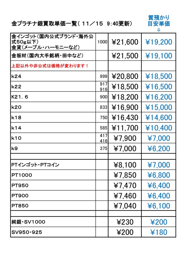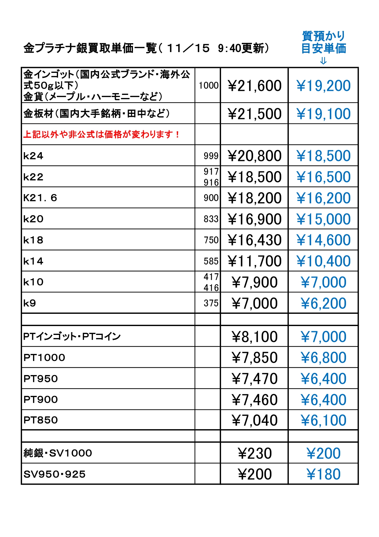 金プラチナ買取価格(2025年11月15日9時40分更新) –